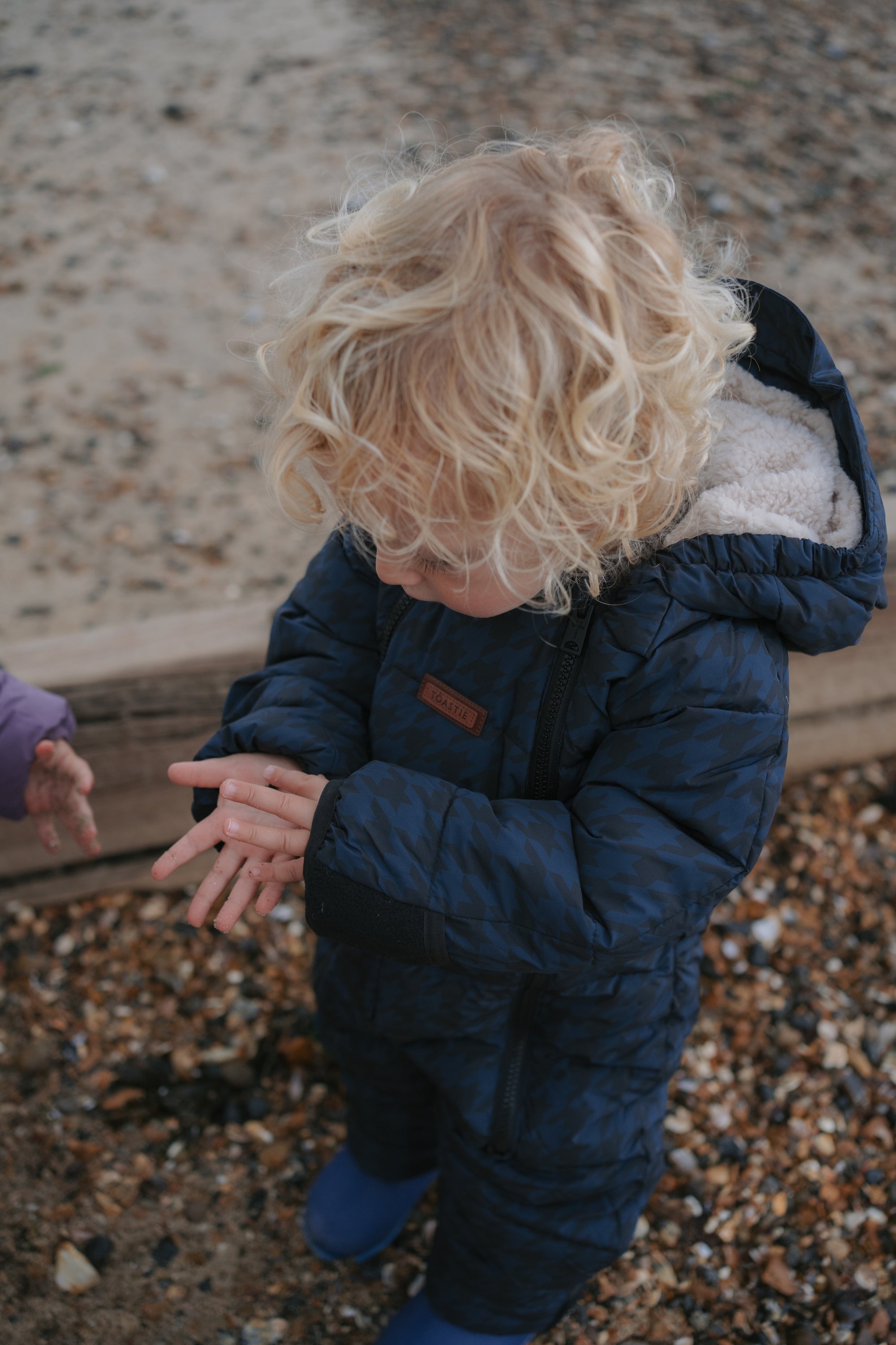 This is your baby's perfect winter suit. The Cloud Onesie is your baby's best-loved companion for cold weather adventures. Crafted using eco-friendly Sorona® faux-down fill and finished with a soft sherpa-lined hood and playful animal ears, this snowsuit is as practical as it is adorable. The double zip ensures easy changes, while fold-over mitts and feet keep your little explorer snug and cosy. Shower resistant and breathable for ultimate comfort, the Cloud Onesie is winter-ready in every way.