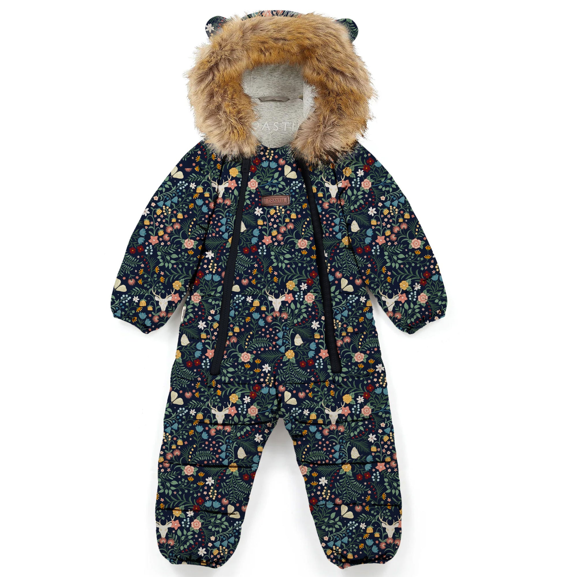 Fur Trim Quilted Onesie | Midnight Floral