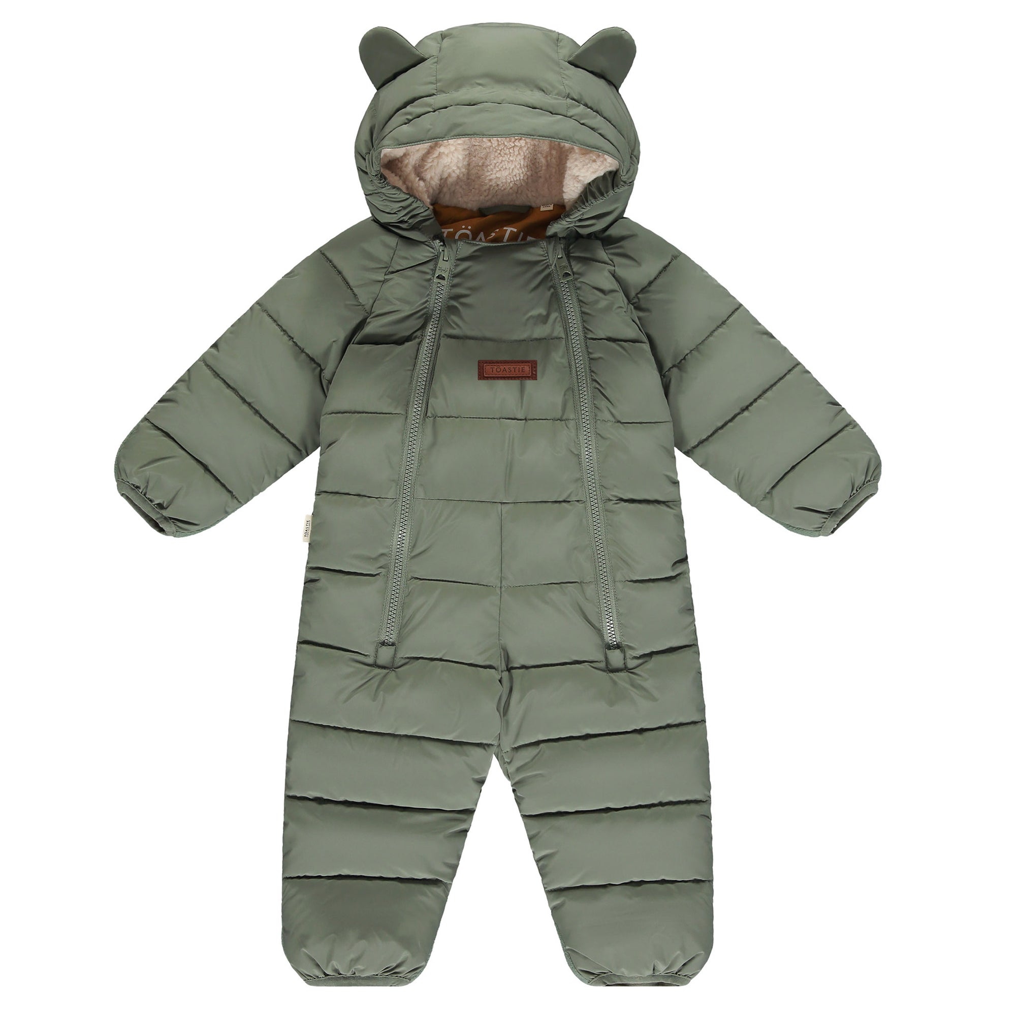 This is your baby's perfect winter suit. The Cloud Onesie is your baby's best-loved companion for cold weather adventures. Crafted using eco-friendly Sorona® faux-down fill and finished with a soft sherpa-lined hood and playful animal ears, this snowsuit is as practical as it is adorable. The double zip ensures easy changes, while fold-over mitts and feet keep your little explorer snug and cosy. Shower resistant and breathable for ultimate comfort, the Cloud Onesie is winter-ready in every way.